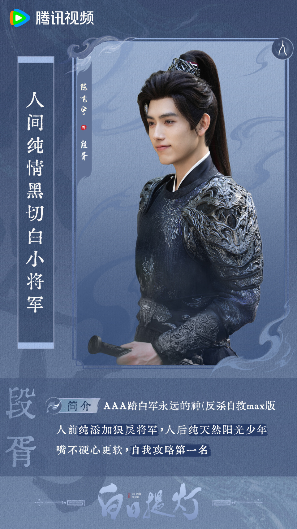 陈飞宇饰演少年将军段胥,战损妆与打戏出圈,完美诠释“战场疯批×撒娇小狐狸”的极致反差,低沉声线与情感戏氛围感拉满,破碎感演技获全网认可。